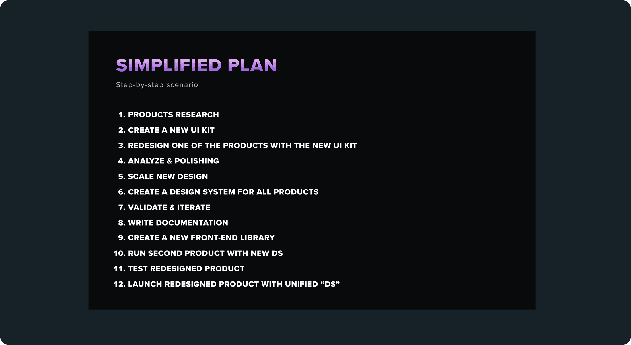 I didn’t “execute a DS brief”; I created the design-system initiative, proposed it, and led it.