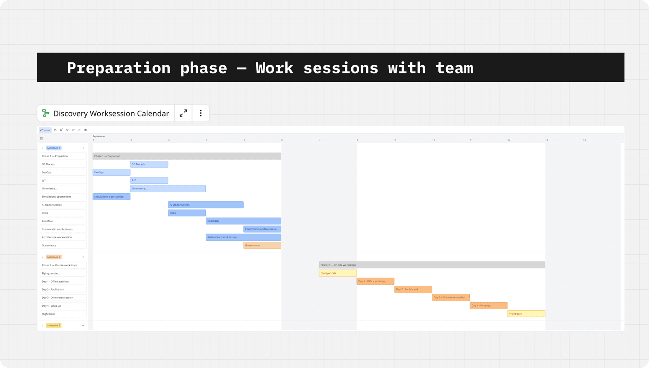 When I joined the project, I had no prior background in the mining industry, the client’s operations, or the current project state. The first week was dedicated to building a clear understanding of the domain and aligning internally before visiting on-site, to clearly document what every expert from the team needs to get from discovery, and align with every one to build agenda and pre-requested items before travel.