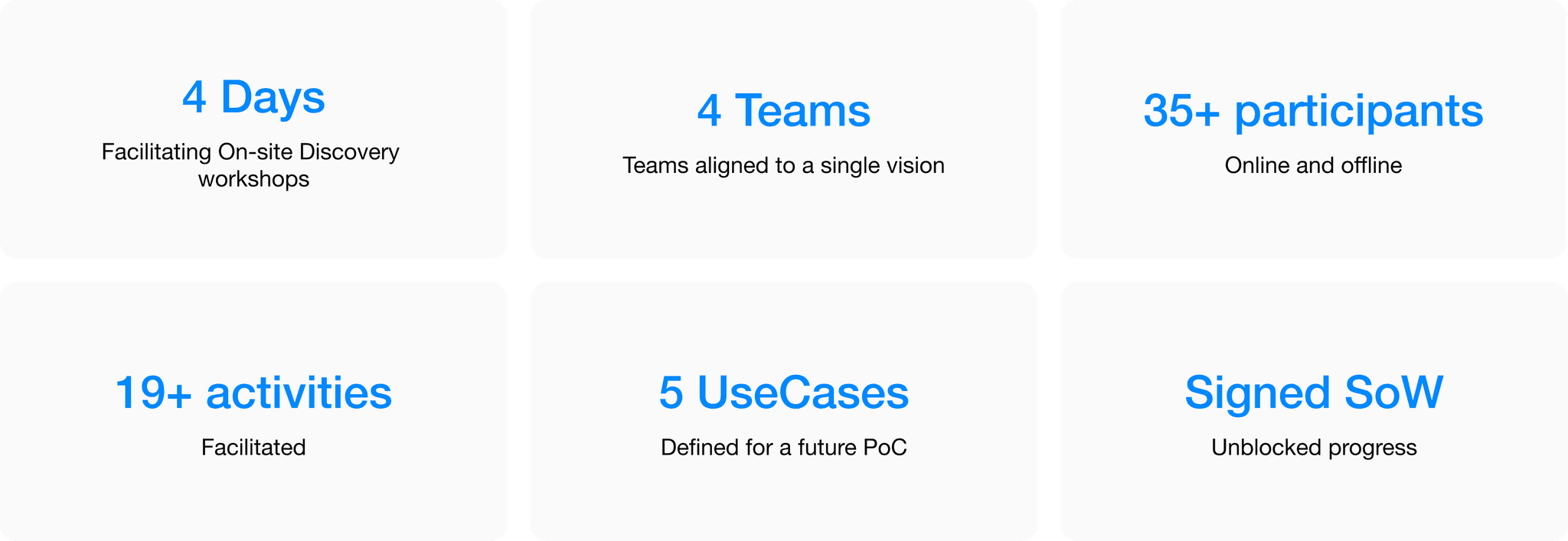 The signed SOW unlocked the pilot phase, securing client’s trust and ensuring continuity for the next 6 months roadmap.