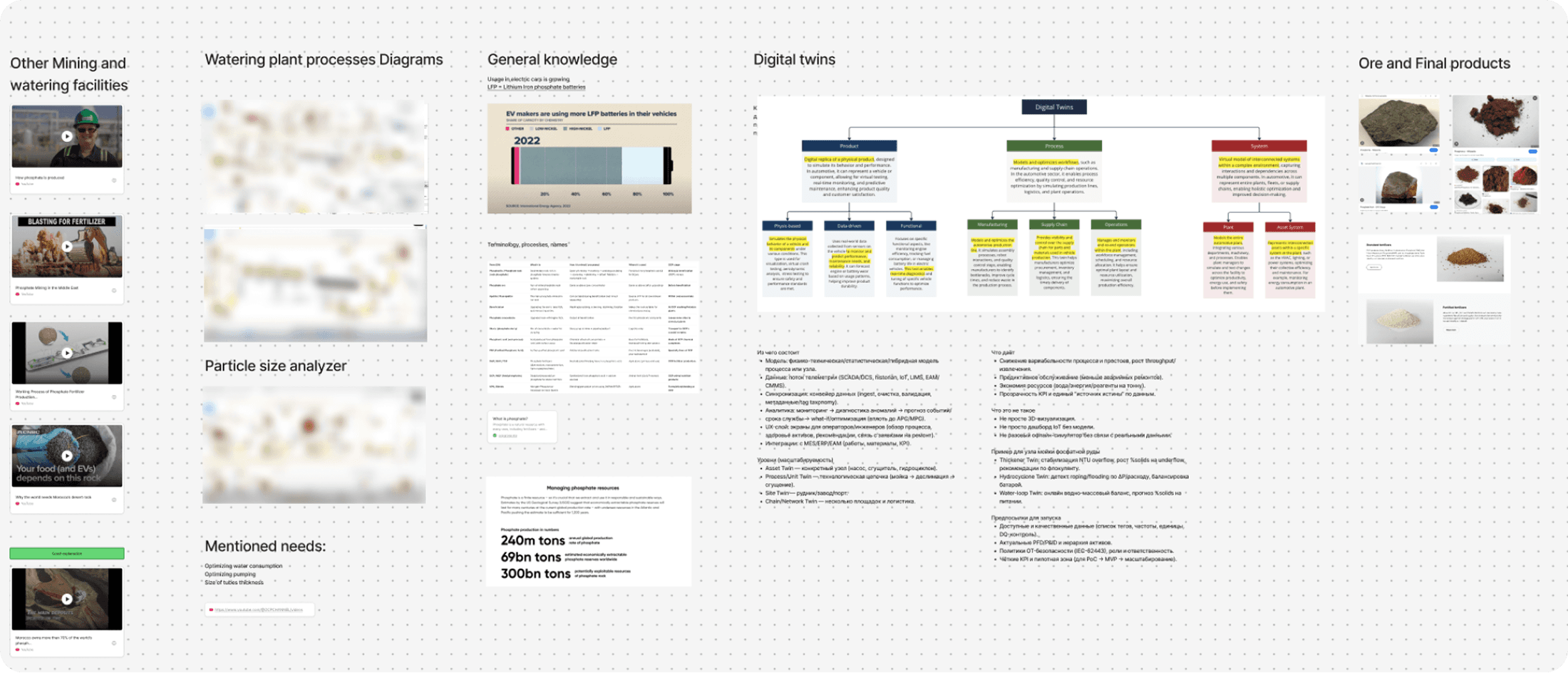 I scheduled one-on-one calls with all subject-matter experts involved in the project to quickly immerse myself in the context. In parallel, I began mapping the entire ecosystem on a Miro board, outlining facilities, production stages, extracted materials, product flows, and distribution chains based on both internal input and publicly available information.