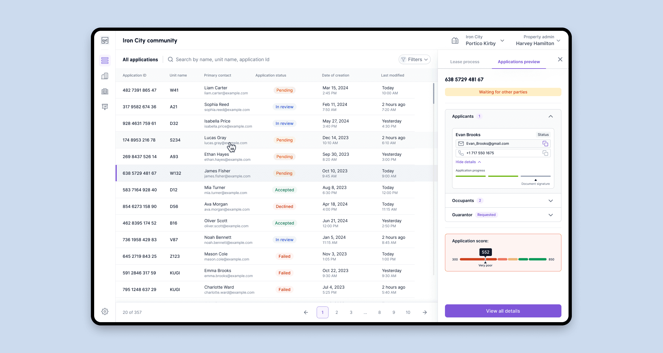 Instead of paginating applicant data across multiple views, I designed a consolidated long-form review page for property managers. Scroll once, see everything, make a decision. No tab-switching, no tool-jumping.