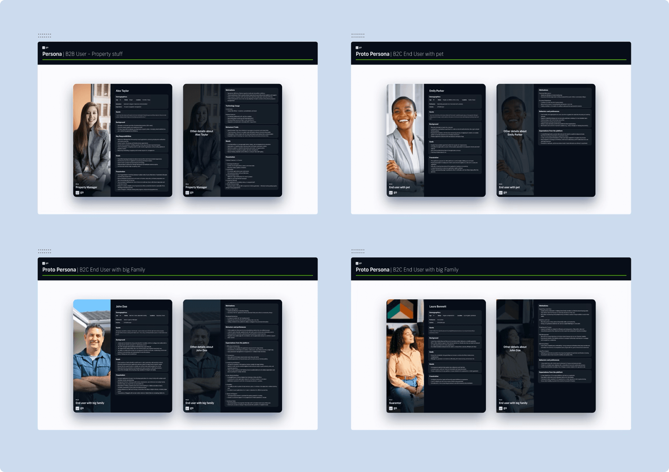 The project started as a basic mobile portal for B2C applicants. Through ongoing collaboration with stakeholders, it evolved into a full-scale enterprise platform serving both sides of the rental market. The team: 30 people, frontend engineers, QA, BAs, a PM, a tech lead, I was the only designer, working across three surfaces from MVP through post-MVP. Constraints included U.S. legal compliance requirements, budget limitations on custom integrations, and the complexity of serving two completely different user types within one product.