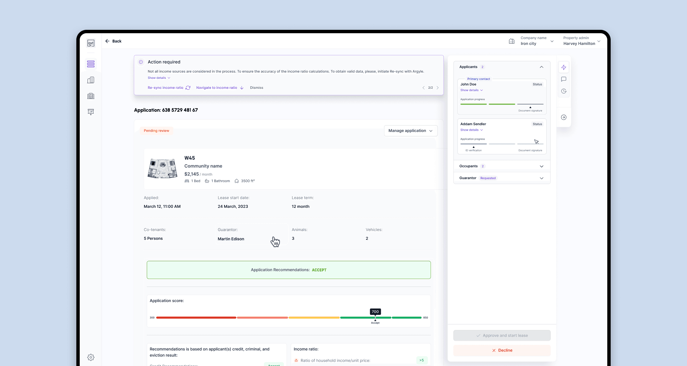 On-site observation showed property managers printing credit scores, manually compiling documents, and jumping between 5–7 tools before they could even begin evaluating an applicant. The insight was immediate: put everything on one scrollable page, score, background check, ID status, recommendation, and they could make a decision without leaving the screen.