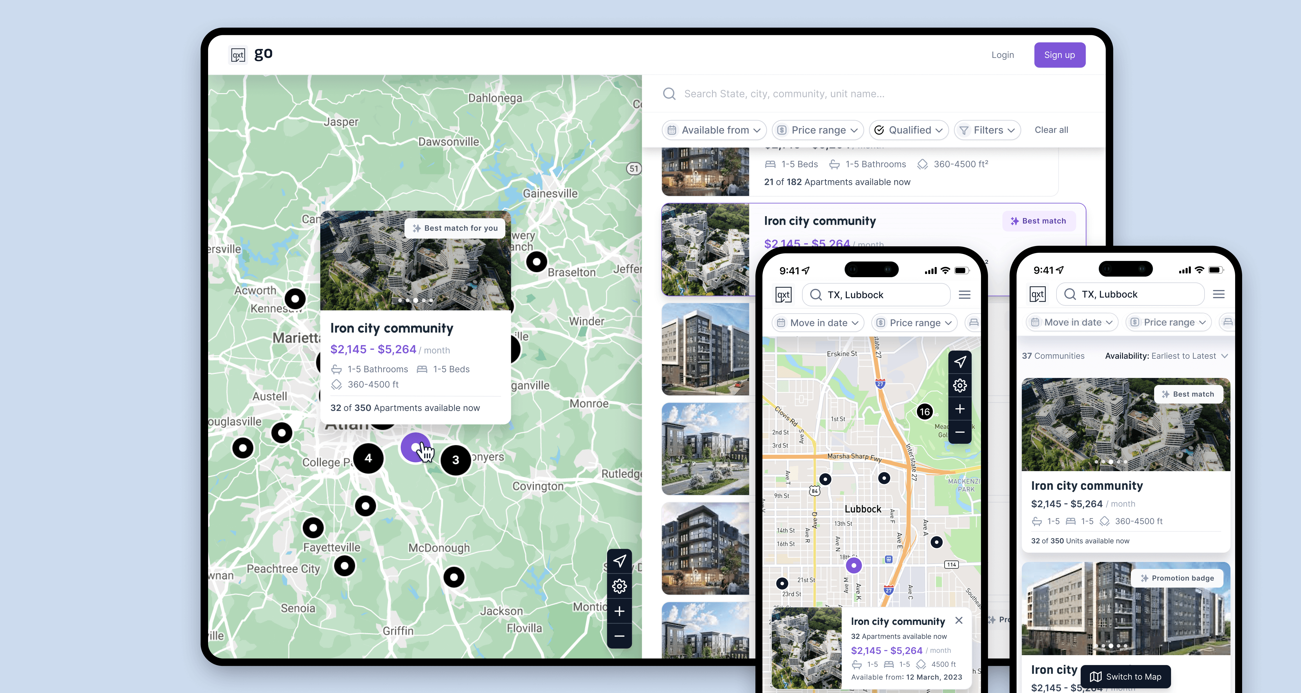 QUEXT GO is an Start up B2B/B2C SaaS platform for the U.S. real estate market, a unified portal connecting rental applicants with property managers, streamlining the entire application, screening, and decision-making process. The product spans web (B2B + B2C) and mobile (B2C).